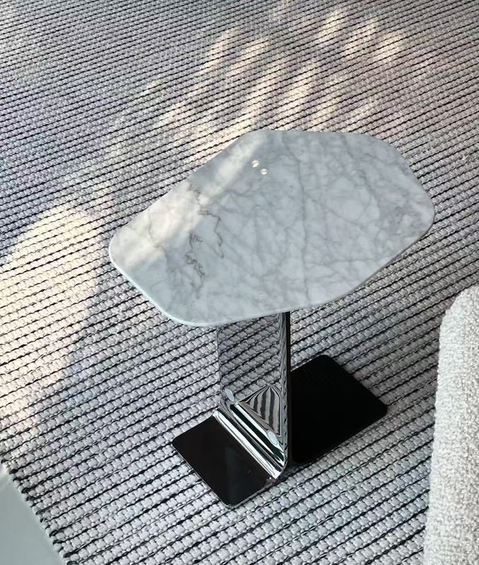 Imaginez-le à côté du canapé de votre salon : la surface en marbre frais et poli accueille votre café du matin ou votre vin du soir, tandis que sa silhouette élégante complète les sièges en velours ou en cuir moelleux. Placez-le à côté de votre fauteuil d'appoint préféré et il deviendra le compagnon idéal pour les lectures de fin de soirée, en tenant votre livre, vos lunettes de lecture et un petit vase de fleurs fraîches. Les pieds solides en acier inoxydable, avec leur finition brossée, ajoutent une touche moderne sans éclipser la beauté naturelle du marbre, s'intégrant parfaitement aux décors contemporains, minimalistes ou classiques.